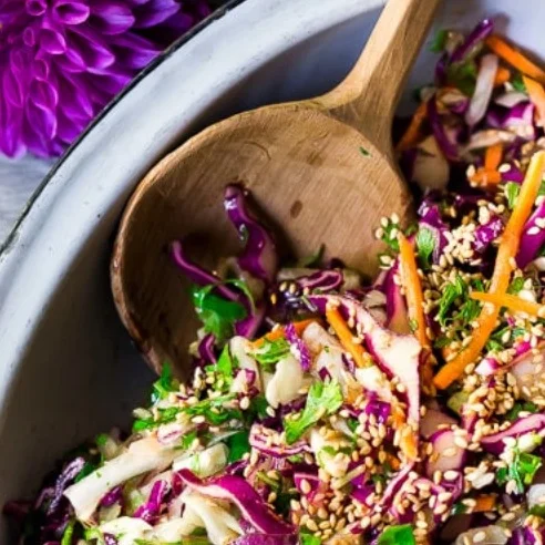 Get the full recipe at: https://www.feastingathome.com/asian-slaw/