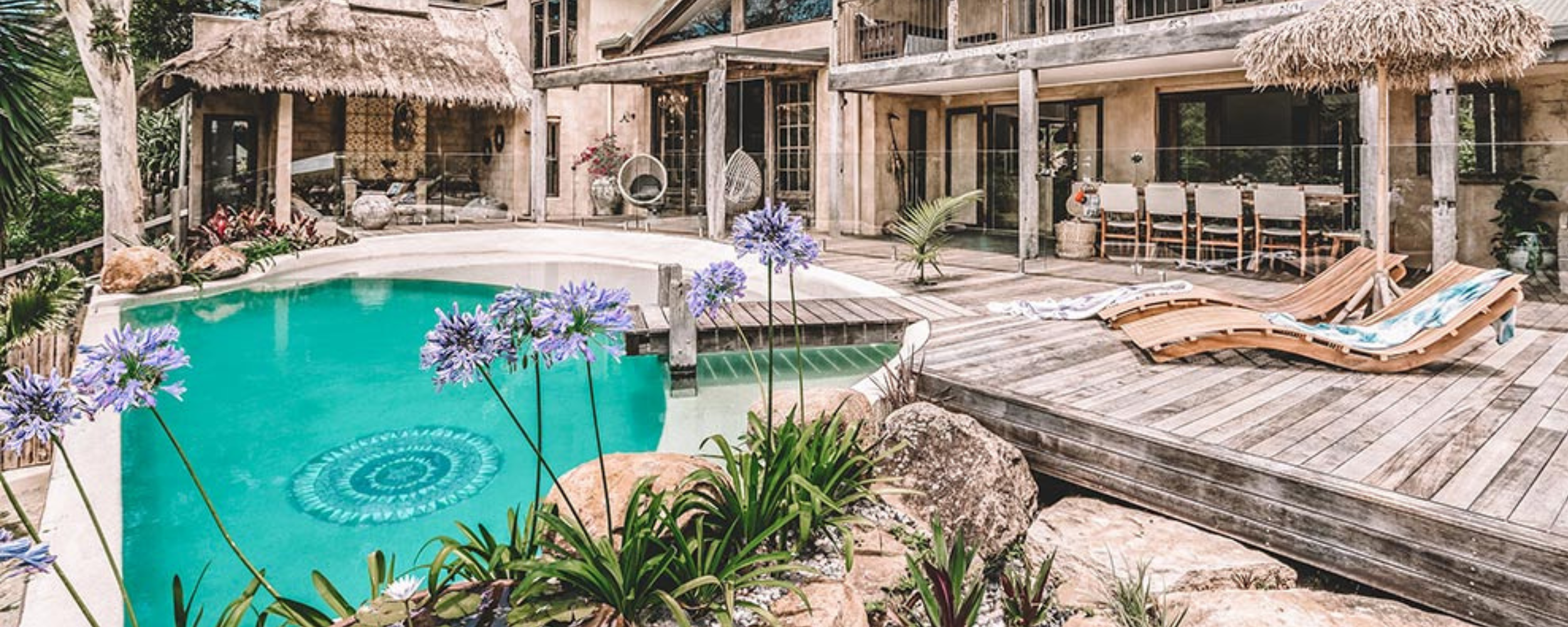 Nestled in the hills just 12mins outside Byron in Newrybar, Blue Green Sanctuary is a secluded oasis where you can unwind, relax & rest. Accommodation options reflect the casual coastal vibe of the Byron Bay lifestyle. Handcrafted details enhance the sense of being part of nature; humble materials have been recycled, salvaged and re-imagined in unexpected ways that celebrate a spirit of creativity. Simple luxury that nourishes the soul.