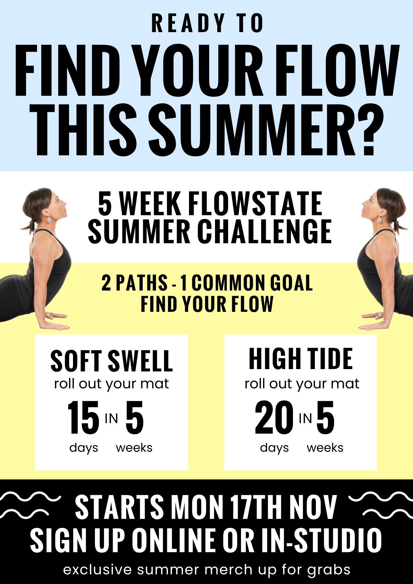 All Summer Flowstate Yogis members who hit their 15 or 20 practice goals in 5 weeks will receive FREE limited-edition summer studio merch ☀️